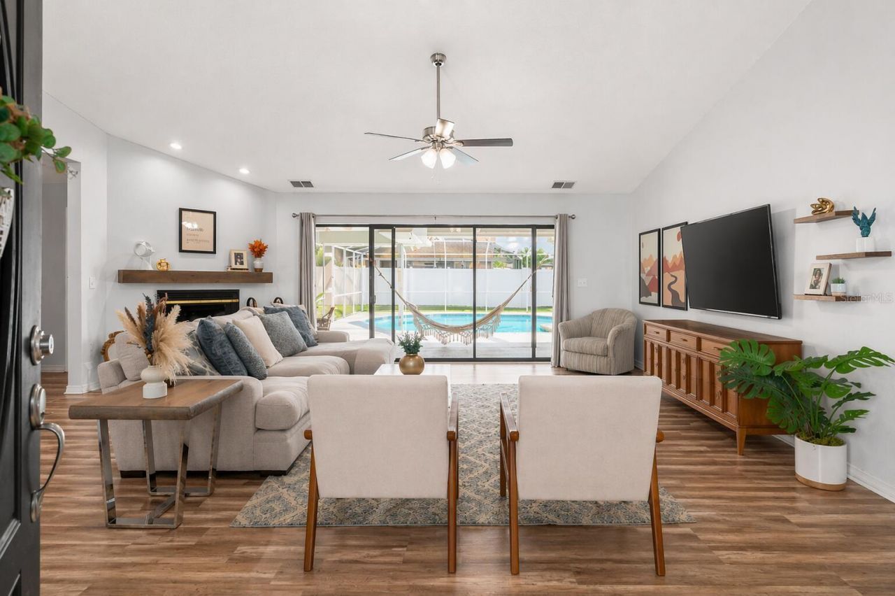 One or more photo(s) has been virtually staged. Welcome to this beautifully maintained 3-bedroom, 2-bath pool home located in a quiet North Lakeland neighborhood. With approximately 2,016 square feet of well-designed living space, this home features a bright, open layout optimal for both everyday living and entertaining.As you enter, you're greeted by a spacious living room with soaring vaulted ceilings and an immediate view of the sparkling pool, creating a light and inviting first impression. The kitchen opens seamlessly into the main living area, providing excellent flow and functionality. Large windows throughout the home fill the space with natural light while showcasing views of the private backyard oasis.All three bedrooms are generously sized, each offering ample closet space. The primary suite includes an attached storage room with the potential to be converted into a custom over-sized walk-in closet, adding both value and flexibility.Step outside to enjoy your screened-in lanai and private pool for relaxing or hosting year-round. The fully fenced backyard provides both privacy and space for outdoor enjoyment.Recent updates provide peace of mind, including a new roof (2023) with a secondary water barrier and an A/C system installed in 2020.Additional features include:Oversized bedrooms with closetsAttached 2-car garage with ample storageDedicated indoor laundry areaQuiet, established neighborhoodConveniently located near shopping, dining, and major roadways, this home provides both comfort and accessibility.Don't miss the opportunity to own this move-in ready pool home in one of North Lakeland's most desirable areas.